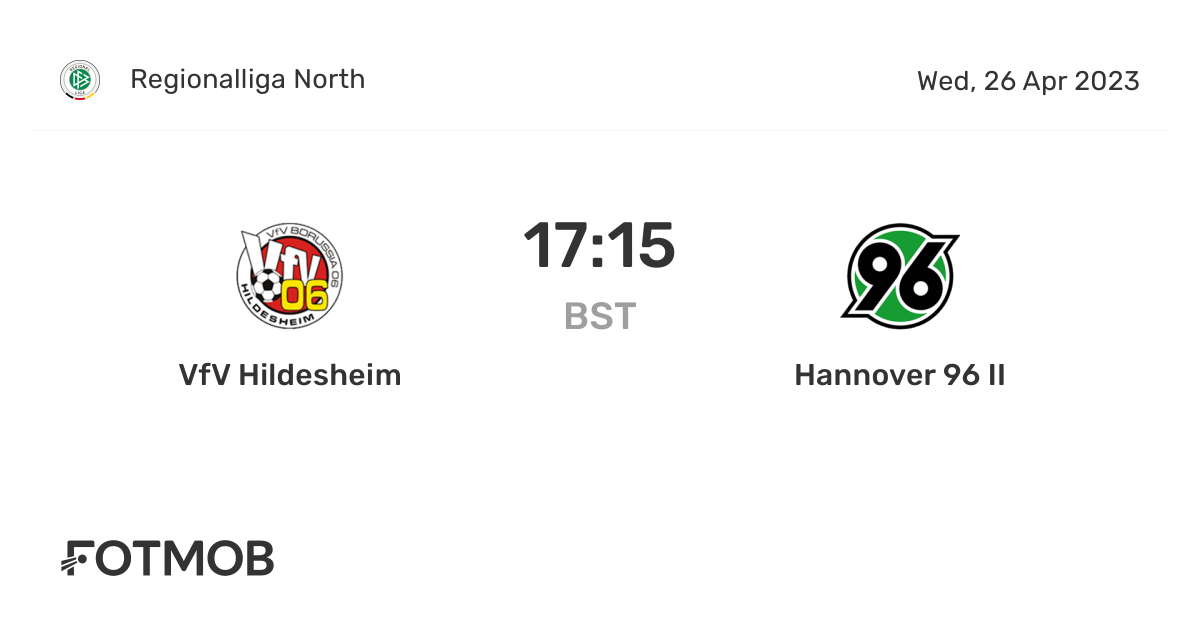 VfV Hildesheim vs Hannover 96 II live score, predicted lineups and H2H stats.